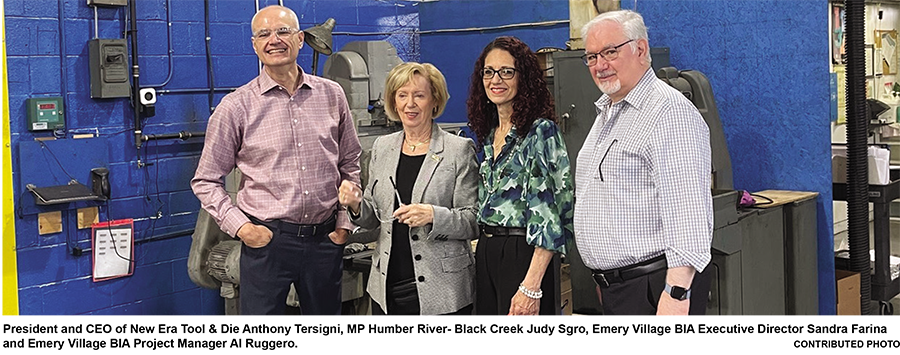 A recent roundtable discussion hosted by Anthony Tersigni, President and CEO of New Era Tool & Die, brought together local MP Judy Sgro, Emery Village BIA Executive Director Sandra Farina, and Project Manager Al Ruggero to tackle the challenges facing manufacturers and exporters in Emery Village.