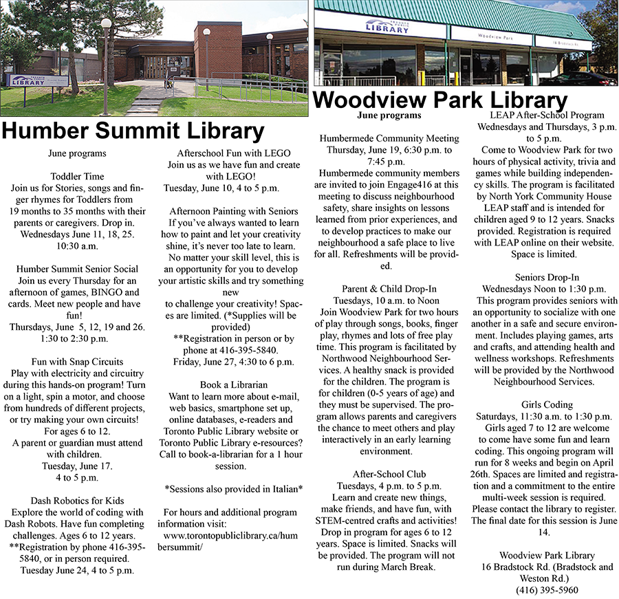 Humber Summit Library and Woodview Park Library - May 2025